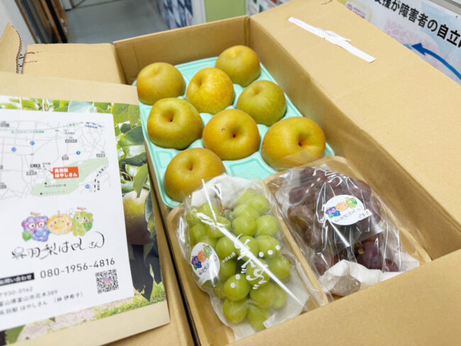 以前梨の人工授粉作業と、ぶどうの摘果作業の支援をいただいた「呉羽梨はやしさん」様から、実った梨と葡萄をいただきました!メンバーもとても喜んでおりました。 早速こころの皆でいただきました。両方とてもみずみずしく、そして甘さもバッチリであまり...